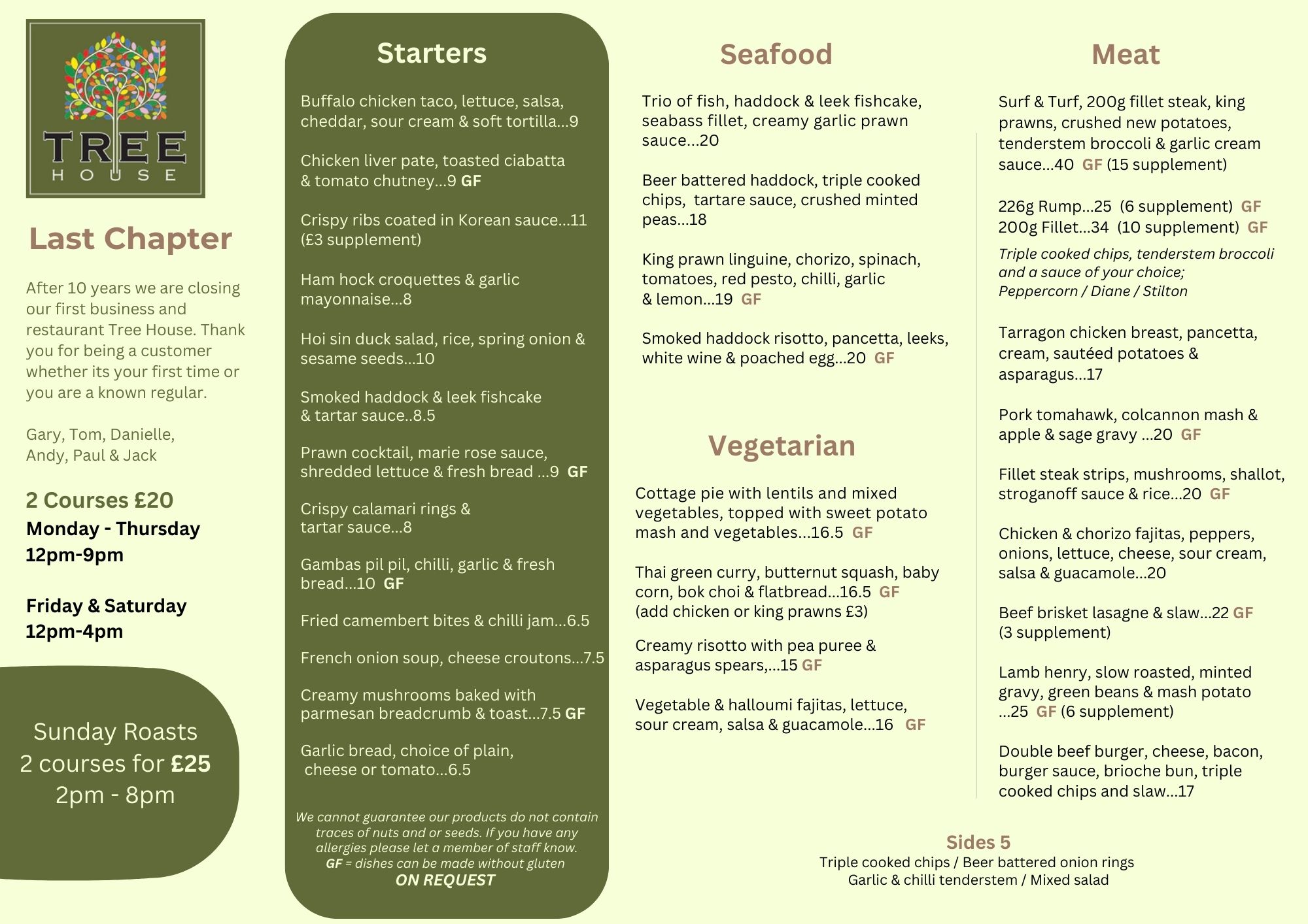 The Tree House was originally opened in 2012 by the owners of Fat Italian restaurants. In May 2016 they decided to sell and chose the Peters family as the perfect successors. Since the sale Tree House has gone from strength to strength becoming one of Crosby’s most popular places to eat.